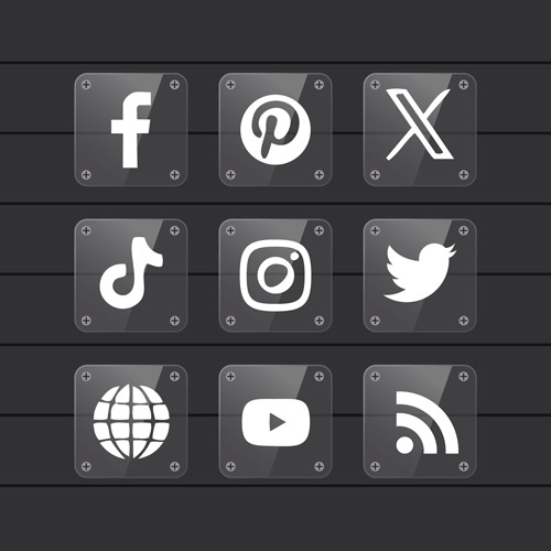 Social Media Sign – White/Colour – 4 Icons